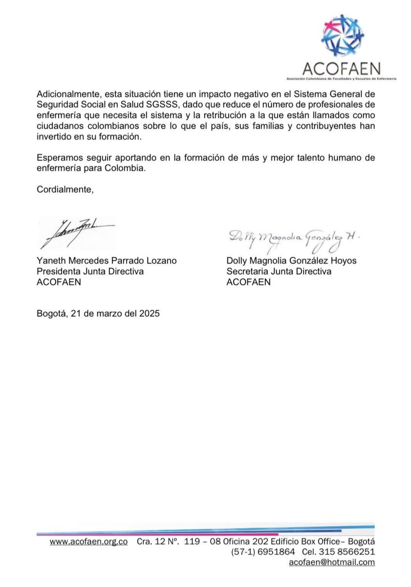 marzo 27, 2025 Pronunciamiento de la Asociación Colombiana de Facultades y Escuelas de Enfermería – ACOFAEN.